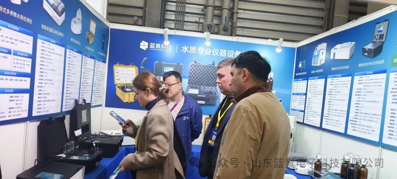蓝景科技的展位前人头攒动,工作人员忙碌而有序地接待着每一位来访者。他们面带微笑,用专业的知识和热情的服务,向来宾们介绍着公司的新产品和技术。通过现场演示和应用介绍,让大家充分感受到了蓝景科技在水质检测领域的深厚实力。